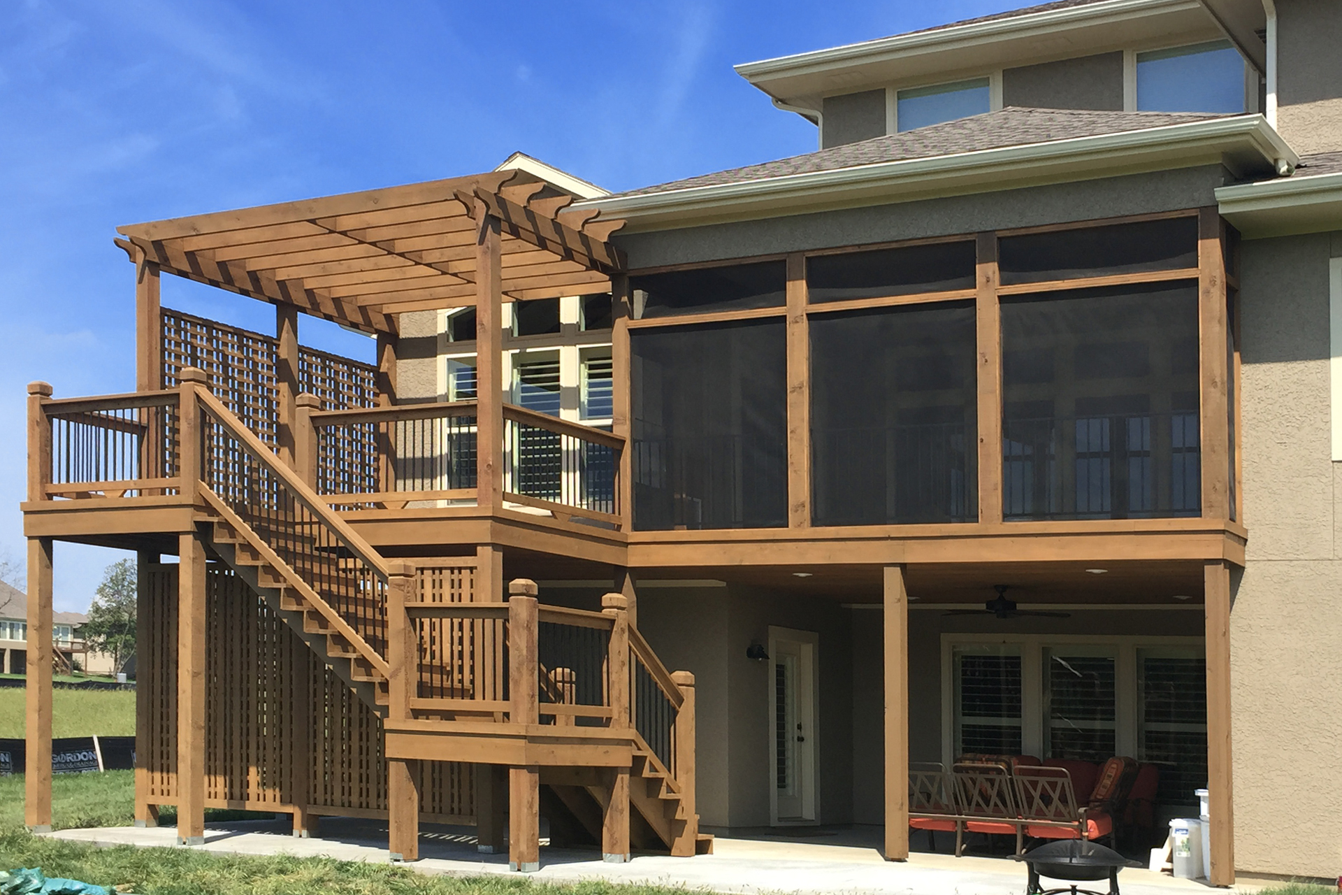 This beautiful backyard deck required a quick pressure was to restore most of its original color, a little bit of sanding and a nice rich dark stain from Sherwin Williams.